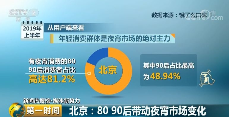 从用户端来看,年轻消费群体是夜宵市场的绝对主力。今年上半年,在北京,有夜宵消费的80、90后消费者占比高达81.2%,其中90后占比最高为48.94%。