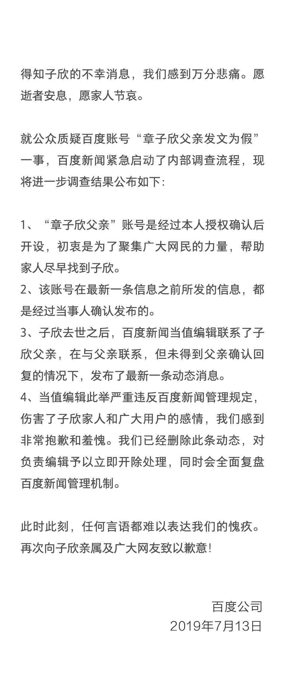 遗体确认是章子欣后,百度这份回应...网友怒了!
