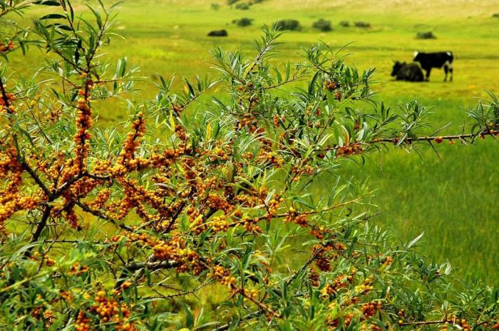 山西省右玉县威远镇种植的沙棘(2007年12月11日摄)。新华社发(辛泰摄)