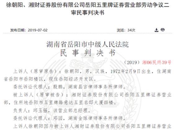 2018年3月8日,岳阳市劳动人事仲裁委员会只裁定湘财证券五里牌营业部需向徐某支付2007年4月至2008年3月差额工资1.08万元,驳回徐某的其他仲裁请求。对此结果徐某表示不服,提起诉讼。