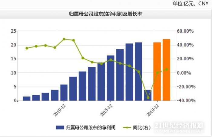 2006年以来,公司的股价也经历了一轮接一轮的翻倍,2006年初还是3元多每股(前复权),2017年曾到达过71.35元/股的高点,但此后逐年回落。
