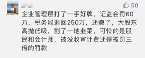 对此,有网友就吐槽说:原来财务造假可以赚钱。