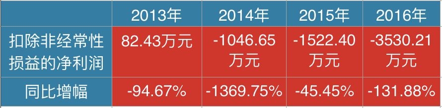 圣莱达的信息披露违法违规,是源于公司业绩不佳。从2013年开始,圣莱达的业绩出现明显下滑,这从扣除非经常性损益的净利润就能看出。