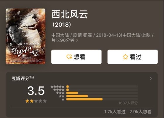 从2015年财报中可见,这部影片名为《饕餮刑警》。该片直到2018年才正式上映,更名为《西北风云》。最终,这部电影在豆瓣的评分仅有3.5。