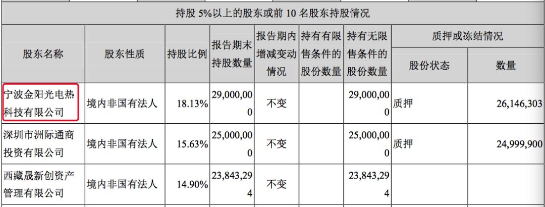 而宁波金阳光电热科技有限公司正是圣莱达的第一大股东。
