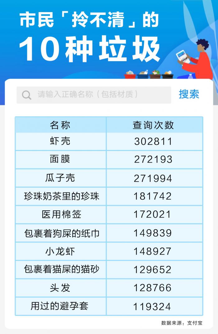 据悉,该AR识垃圾试运行1周,已经有超过300万人查询,其中虾壳、面膜、瓜子壳、包裹着猫屎的猫砂等荣登十大“拎不清”垃圾,市民查询次数最多。