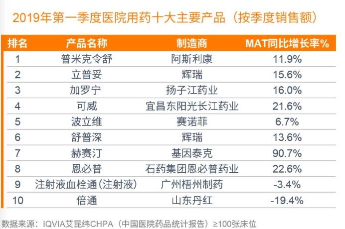 “在2019年一季度的十大产品中,立普妥和波立维(原研)两大4+7产品的增速依然迅猛。只能说执行区域的力度不够,很多医院管理层还在观望;同时非4+7区域的市场原研的推广力度加大,增加了医保的支出。(例如辉瑞在广大市场扩编)。”上述企业负责人认为目前区域推广力度需要加大。