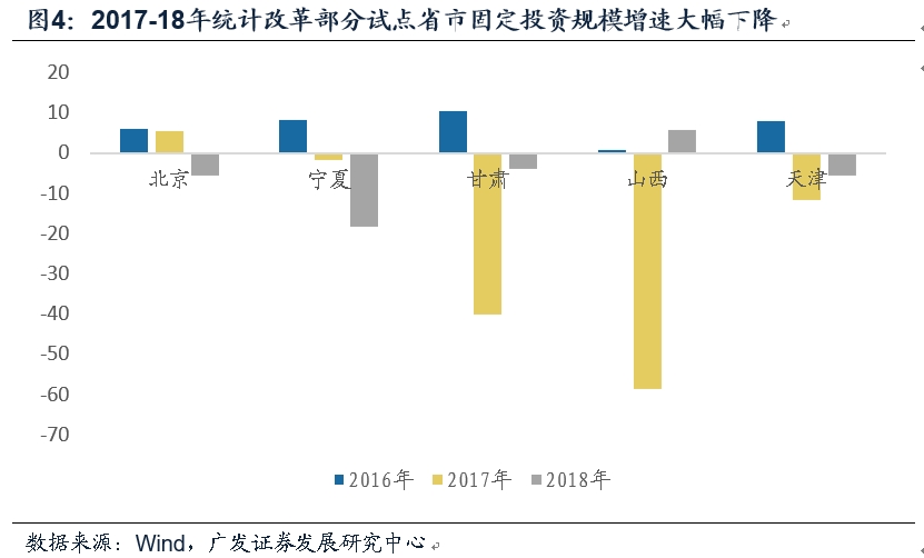 三是2017-18年,固定资产投资统计制度发生了以“形象进度法”代替“财务支出法”的变革。2017年,统计局发布了《关于开展2017年固定资产投资统计制度方法改革试点工作的通知》,确定在山西、河北、甘肃三个“先行先试地区”及其它17个省市部分县市开展以财务支出法为主要核算方式的固定资产投资统计,以逐步取代形象进度法的投资统计。2018年,投资统计改革再度加快。我们曾经在一系列报告中探究该指标的有效性与影子指标,本文试图从上市公司(中观角度)与重点工业品(微观角度寻找宏观投资指标的指示意义。