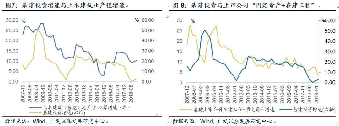 基建投资是相对比较抽象的一类投资分项,在宏观层面,投资需求可以用土木建筑业产值指标进行衡量。如果以上市公司中“固定资产+在建工程”来观察,这一指标稳定滞后于基建投资增速3-4个季度。由于基建投资增速在去年末已经触底,预计上市公司“固定资产+在建工程”指标将持续上升。