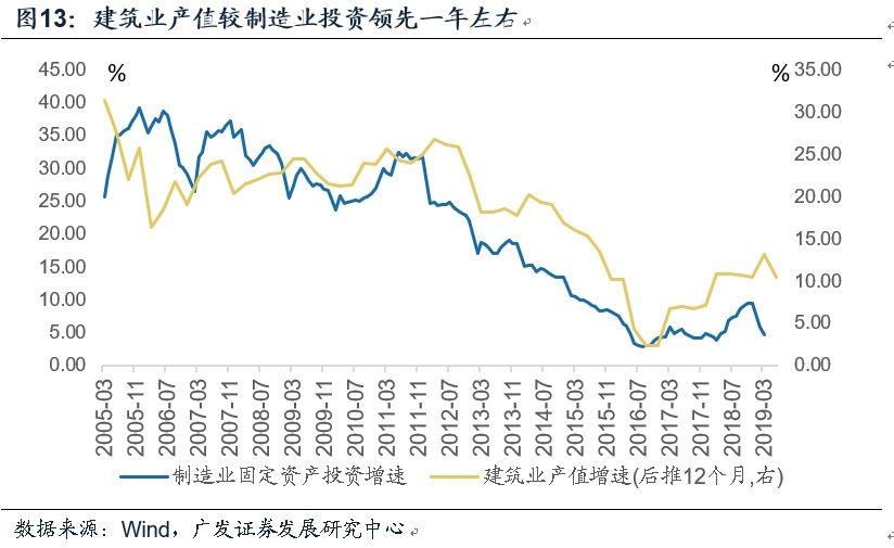 从经验规律来看,工业产能的表现滞后于建筑业产值(房地产与基建投资)一年左右,原因在于: