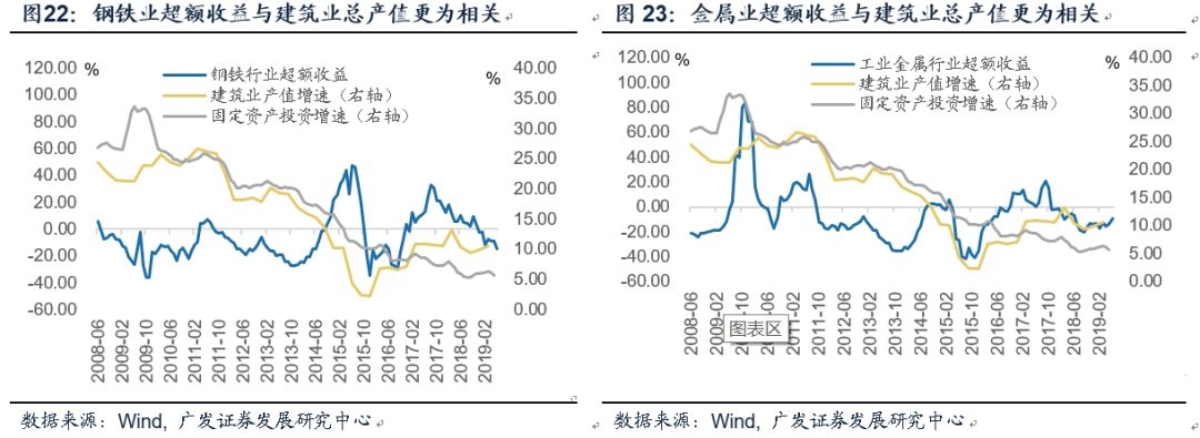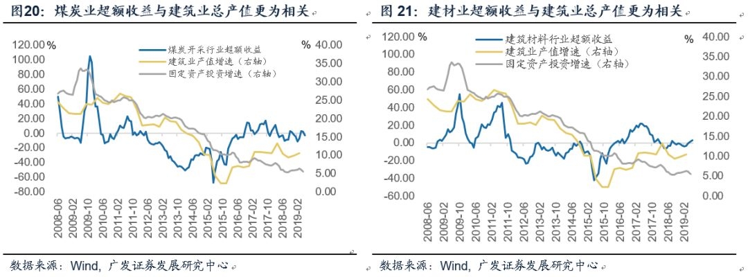 2016年以来,固定资产投资增速与建筑业产值持续背离,前者弱而后者强。在这一过程中,决定钢铁、煤炭、有色、建材等周期工业品量价的主要是建筑业产值而非固定资产投资增速,权益市场上周期品行业的超额收益也是如此。