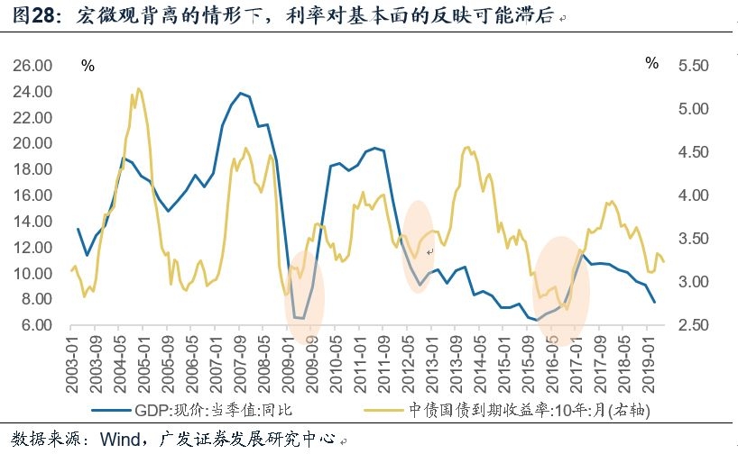 几轮周期以来,每一轮利率底部的出现都领先于经济底部,唯有2016年FAI增速向下的时段中,利率底滞后于经济底出现,且时滞长达一年。因此在对市场的判断和预测中,不可忽视固定资产投资完成额数据(无论是否准确反映需求)对市场预期的引导作用,对于这种越来越常见的滞后性来说,宏微观背离可能是背景之一。