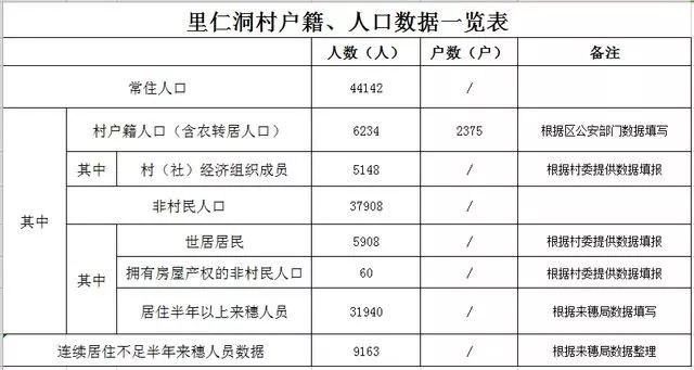 最新数据显示,里仁洞村户籍人口6234人,2375户,常住人口达44142人。