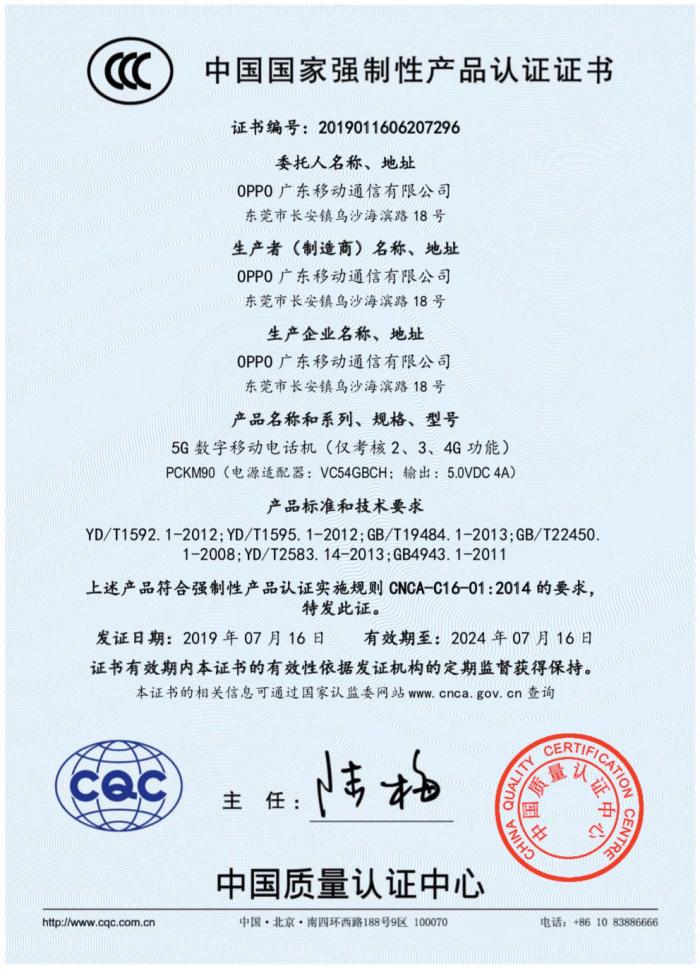 此前,Reno 5G版已获得工业和信息化部无线电管理局颁发的无线电发射设备型号核准证和中国质量认证中心CCC认证。这意味着OPPO Reno 5G版已获得了5G手机上市前的必要资格。