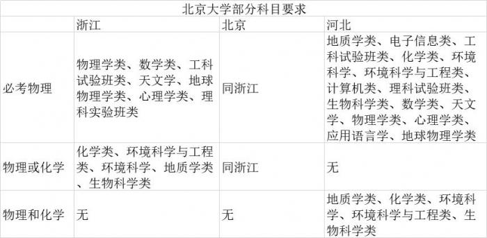 “3+3模式”中,北京大学的科目要求分为“不限科目”、“必考物理”和“物理化学2选1”共3种要求。