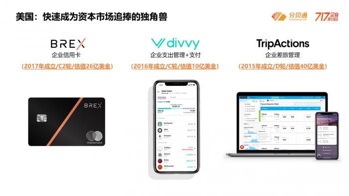 在海外市场上,美国的企业支出管理领域受到了资本市场的高度认可,以Divvy、Brex、TripActions为代表的创新型企业支出管理公司,均是在三年左右成长为估值几十亿美金的独角兽企业。