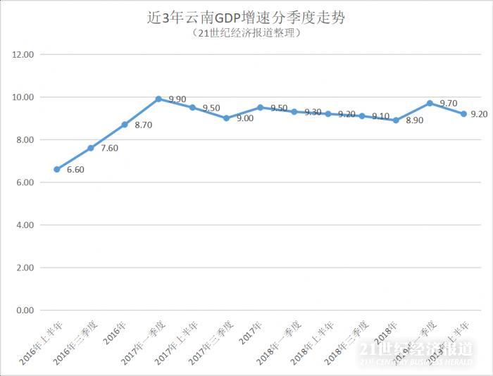 不仅如此,从2017年一季度以来,云南GDP增速在大幅跨上9%以上之后,至今已连续10个季度维持在较高增速状态,并也始终位居全国各省区市的前列。这其中,比如2018年三季度、今年一季度等节点,云南的GDP增速甚至排名全国第一。