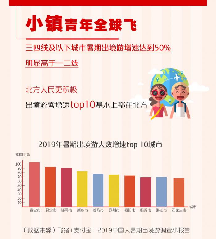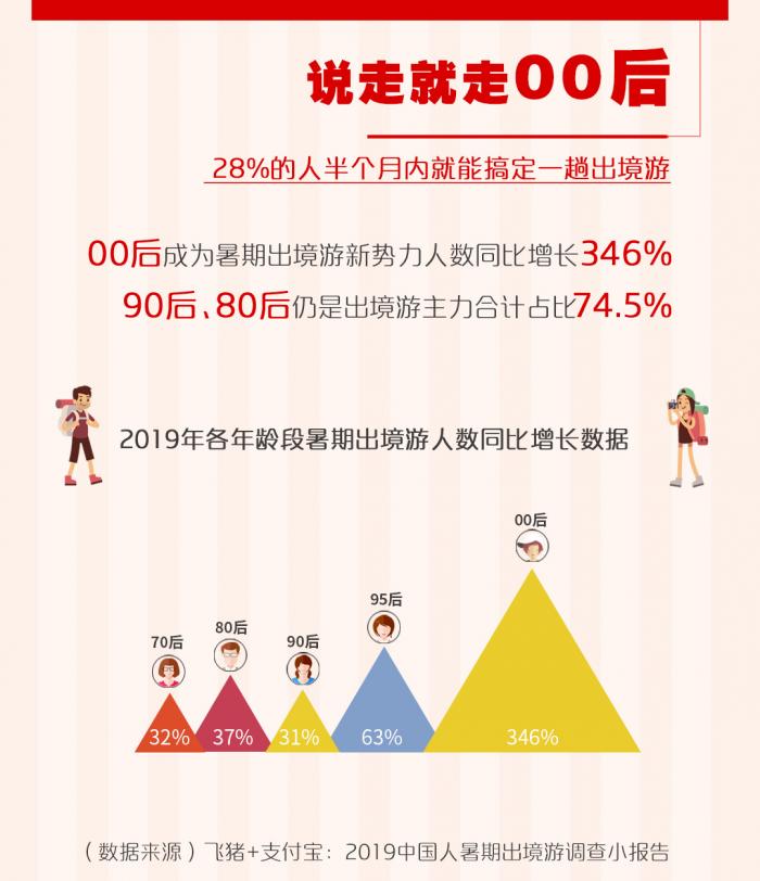 7月18日,飞猪联合支付宝发布了《2019中国人暑期出境游调查报告》。报告显示,“小镇青年”成今年出境游的新热门标签,00后崛起在出境游中增速最高,北方人全球飞增速显著。