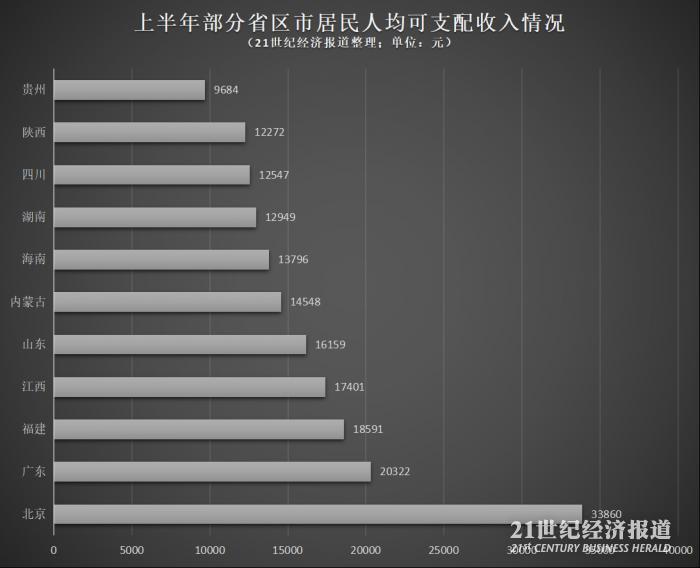 13省公布上半年居民可支配收入:北京超3万、广东超2万,贵州增长最快