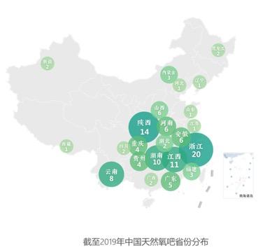 截止目前,全国已有115个地区获得中国天然氧吧称号,其中氧吧数量最多的省份浙江,已有20个目的地获得称号。