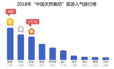 根据携程跟团游和自由行数据显示,江西婺源、江西庐山、贵州赤水、浙江临安、湖北神农架、广东龙门、江西武宁、湖北英山、河北围场和安徽石台成为人气排名前十的氧吧目的地。