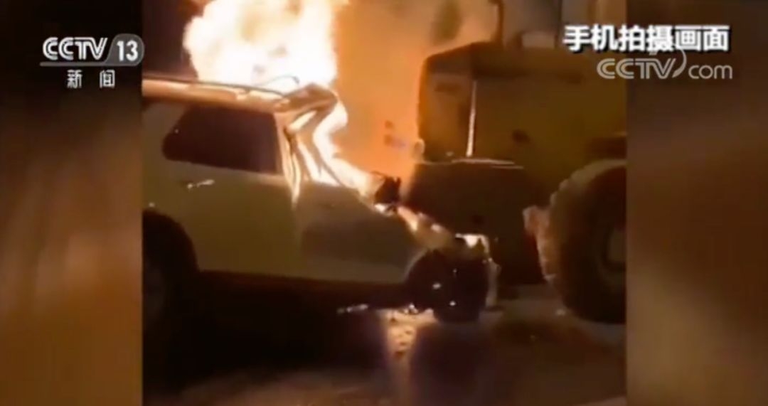 事故发生后,一段记录了追尾车辆从冒烟到起火,最终被火焰吞噬的短视频在网络上传播开来。这段视频也引发了大众对于先救人还是先报警的讨论。