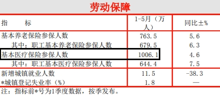 医保参保人数与常住人口虽然不能完全划等号,但在全国医保参与率达95%以上背景下,两者显然有明显相关性。