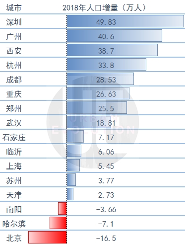 其中,2018年深圳、广州人口增量双双突破40万人,显示出珠三角“双子星”的强劲吸引力。