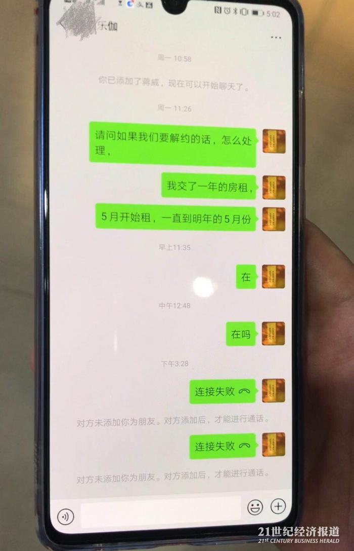 而记者在一个疑似乐伽员工群的群聊纪录里,看到陈宝自称被公司欠薪,也是受害者,并股鼓动其他同事维权;乐伽委托的律师对租客透露律所已经与乐伽解除委托,也被拖欠律师费。据了解,乐伽公寓合肥公司原来有3、4个办公地点,现在全部集中到一个地方。乐伽前两天召回合肥业务员,并已全部强制离职。
