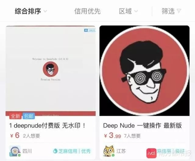 南都记者检索发现,DeepNude官网关闭后,各种版本的软件先是在开源社区GitHub上流传。7月10日,GitHub全面封禁了类似项目的代码库。但DeepNude依然流入中国,并在各种社区和云盘内悄然扩散,甚至有电商平台商家打出“DeepNude破解版”“无水印”的名号售卖该软件牟利。