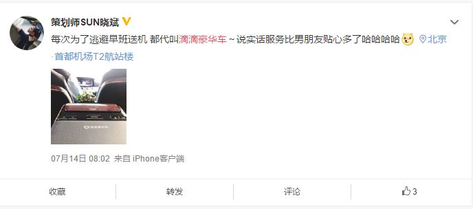 “我们很重视用户的评价,大家都说滴滴豪华车价格略高,其实在一定程度上用户是在为服务和细节买单。这种正面的评价算是对我们工作的认可吧,看到这些评价很开心。”说到这里,赵玫的笑意更深了一些。