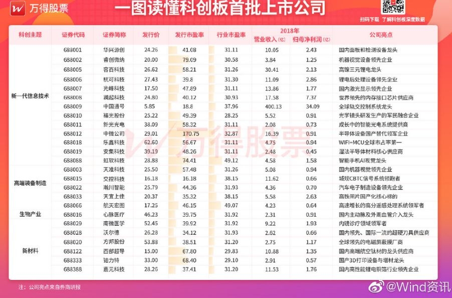 陈畅认为,从创业板指和创业板50指数行业分布来看,通讯、计算机、电子、医药等行业分别占上述两指数权重的50.2%和56.6%。而上述行业与科创板首批上市公司所属行业类别较为接近。根据Wind数据统计可以发现,绝大多数科创板首批上市公司的发行市盈率都高于行业市盈率,因此,科创板的开市一定程度上会对科技类个股产生示范效应,不同板块、同一行业、不同上市公司股票可能也会产生横向联动。