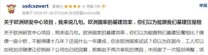 需要指出的是,在大族激光因质疑股价暴跌期间,已有部分投资者在网上表达了类似观点,比如吐槽欧洲国家基建效率慢等,甚至还有“人肉”出了其欧洲项目的卫星图。