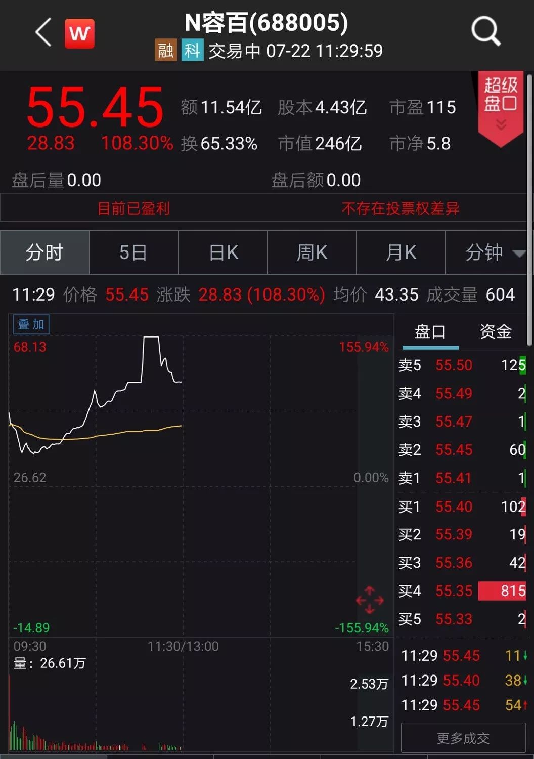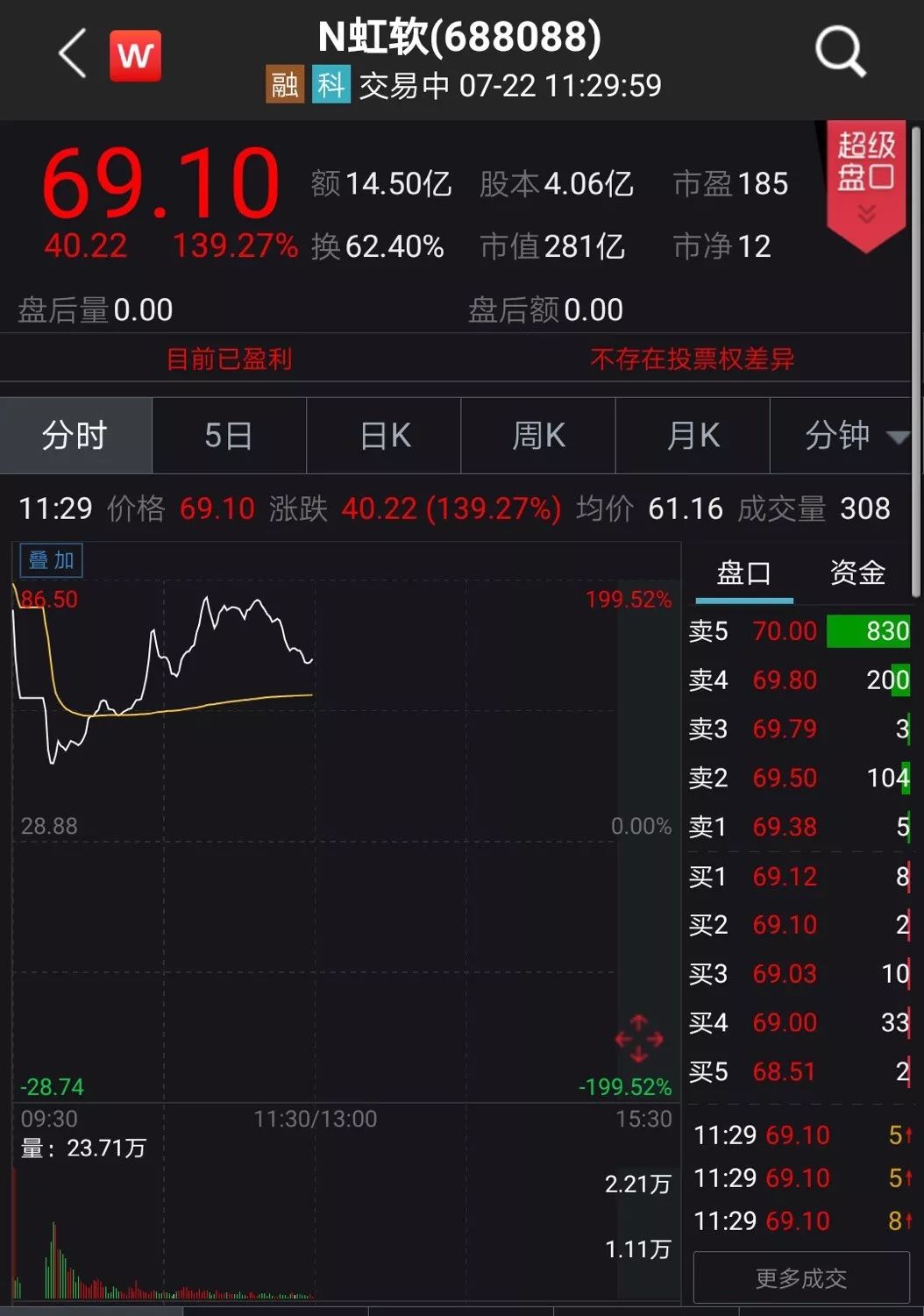 除虹软科技、容百科技外,其余的十三家企业实控人也均未能“晋级”。以开市前实控人市值27亿元的天宜上佳和22亿元的光峰科技为例,截至午间收盘,二者涨幅分别为121.06%和128.4%,实控人持有市值均达到翻倍,超过50亿元。