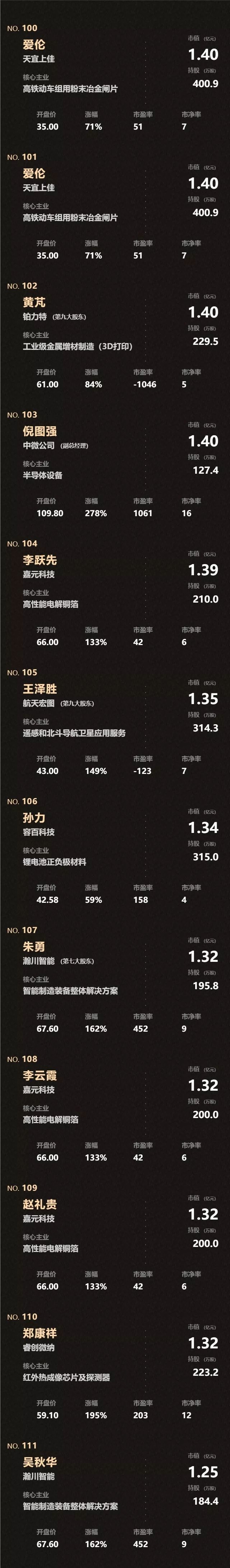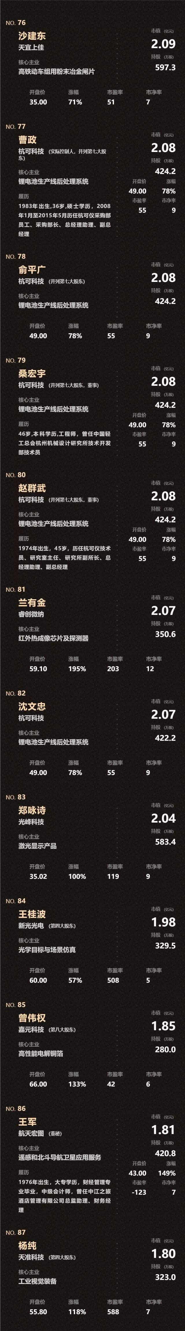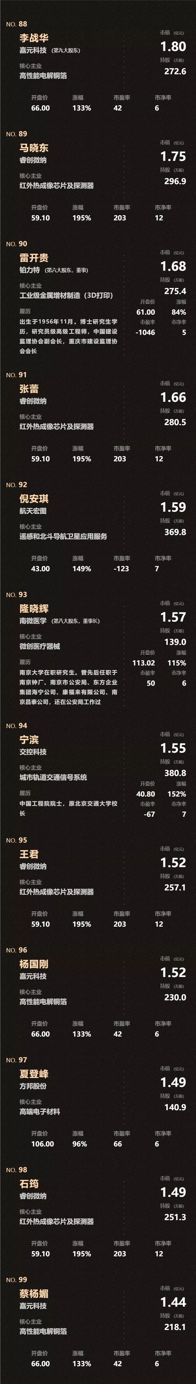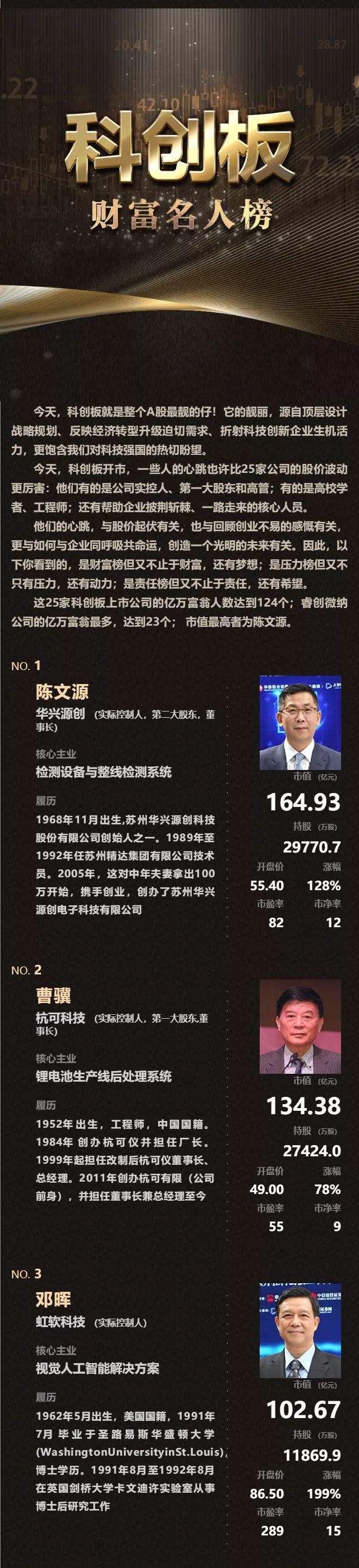 刚刚,科创板催生124个亿万富翁(全名单)