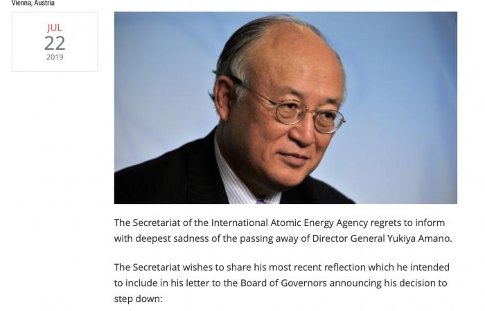 北京时间7月22日下午,国际原子能机构(IAEA)宣布总干事天野之弥去世。享年72岁,声明没有提及去世时间及原因。