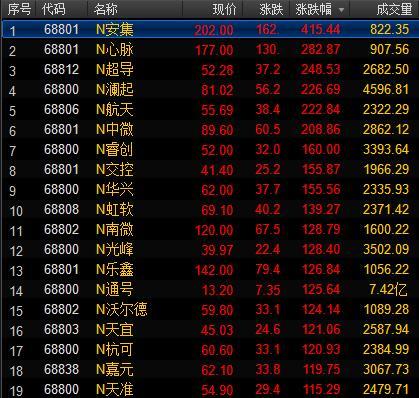 从换手来看,排名前三的股票分别为N安集、N超导、N睿创。N通号以76亿元成交额居首,N澜起成交36亿元次之。