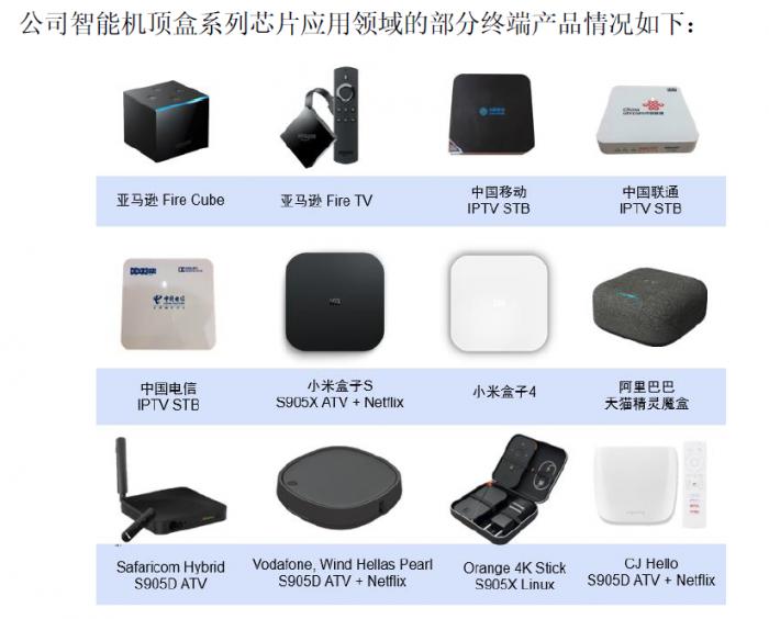 图:采用晶晨处理器的智能终端产品,小米是重要先锋用户