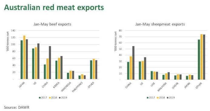 到2019年,中国已成为澳洲最大的牛羊肉联合出口量目的地,首次超过美国和日本。