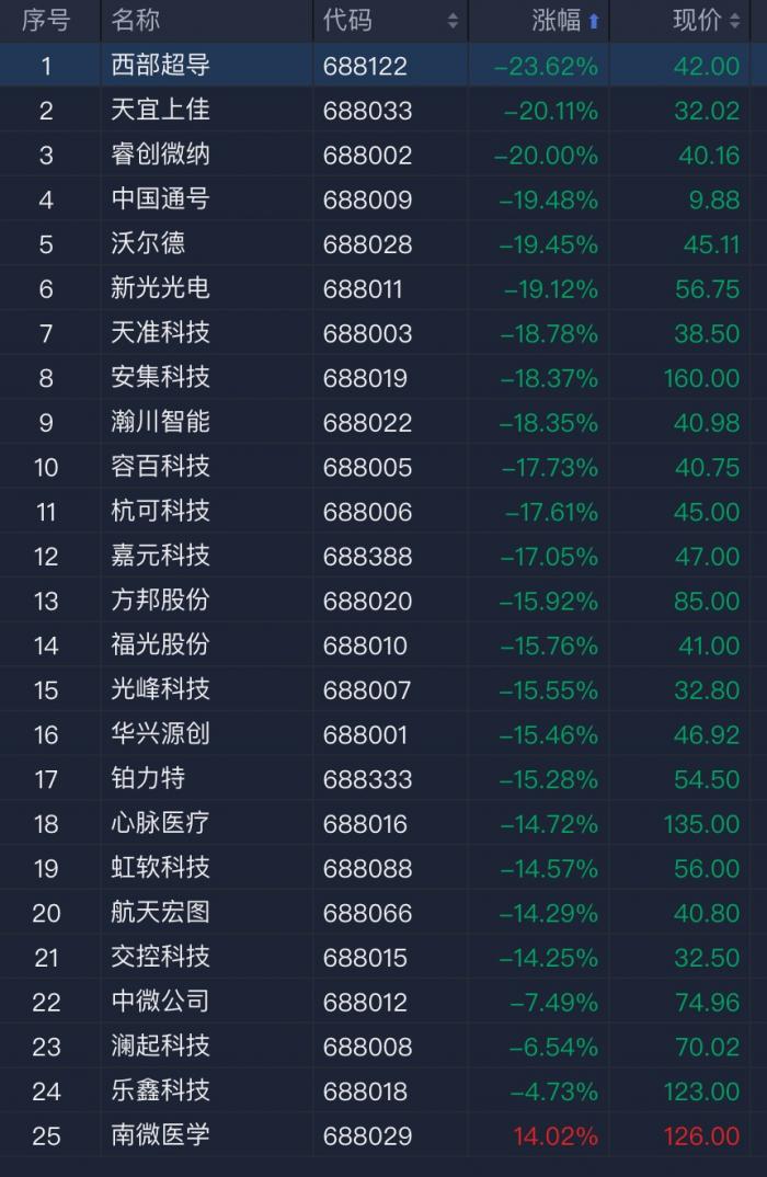 从喧嚣到理性只要一天!科创板24只股集合竞价齐跌,西部超导、天宜上佳、睿创微纳跌逾20%
