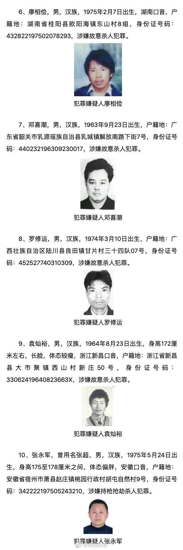今日,公安部发布A级通缉令,公开通缉50名重大在逃人员。如发现线索,请尽快拨打110报警!对提供有效线索,为抓捕工作发挥关键作用的人员,每抓获一名在逃人员公安部将给予人民币10万元奖励。
