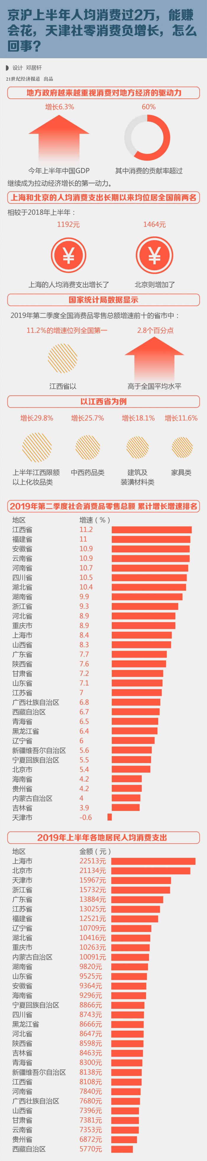 京沪上半年人均消费过2万,能赚会花,天津社零消费负增长,怎么回事?