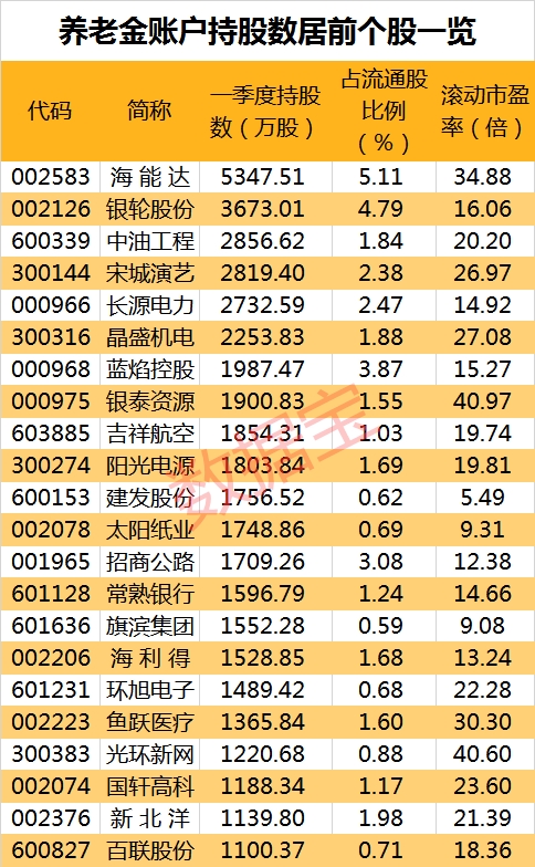 最新养老金持仓动向曝光:4股半年报业绩预计翻番,7股低估值滞涨
