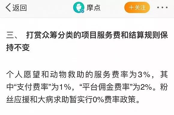 同时,以摩点为代表的粉丝服务平台也为粉丝们提供了最实惠的服务。根据摩点团队6月21日发布的公告,在该平台上,游戏、动漫、影视、音乐、爱心通道等类别的产品众筹项目服务费为6%,其中包括1%的支付费率和5%的平台佣金费率。但自7月15日起,对于粉丝应援和大病求助,摩点平台实行0%的费率政策,此前粉丝应援仍需缴纳3%的服务费。