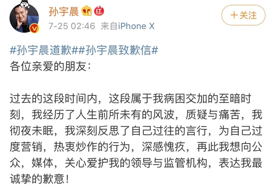 孙宇晨道歉了。
