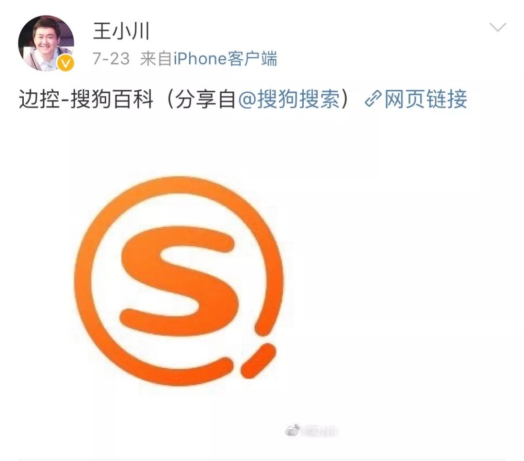 值得玩味的是,孙宇晨“被边控”的消息被曝出后,王小川还在微博分享了“边控”一词的搜狗百科。