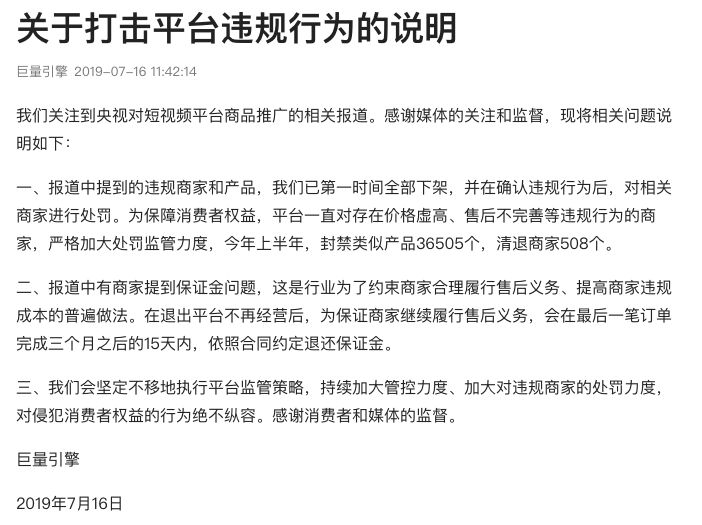 7月16日,抖音就央视对此类事件的相关报道发布说明。说明如下: