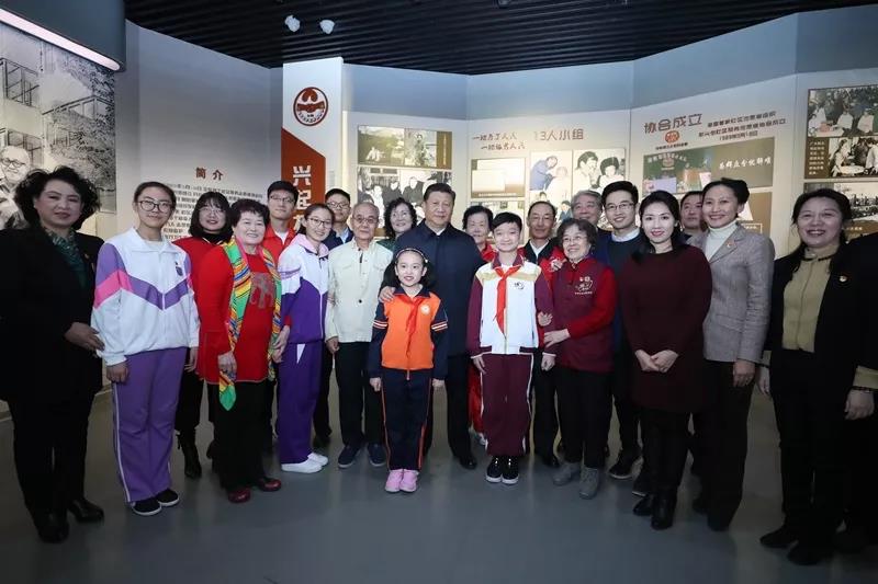 △2019年1月17日上午,习近平走进天津市和平区新兴街朝阳里社区志愿服务展馆,同志愿者们亲切交流