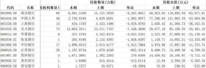 此外上海银行、光大银行和华夏银行的被减持幅度也较大。