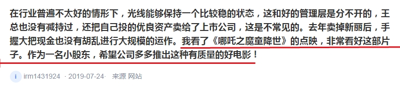 东兴证券和联讯证券分析师认为,《哪吒》点映口碑的火爆并没有完全反应到光线传媒股价上。联讯证券给了《哪吒》10亿元的预估票房,并建议投资者参与爆款影片《哪吒》的交易性机会。